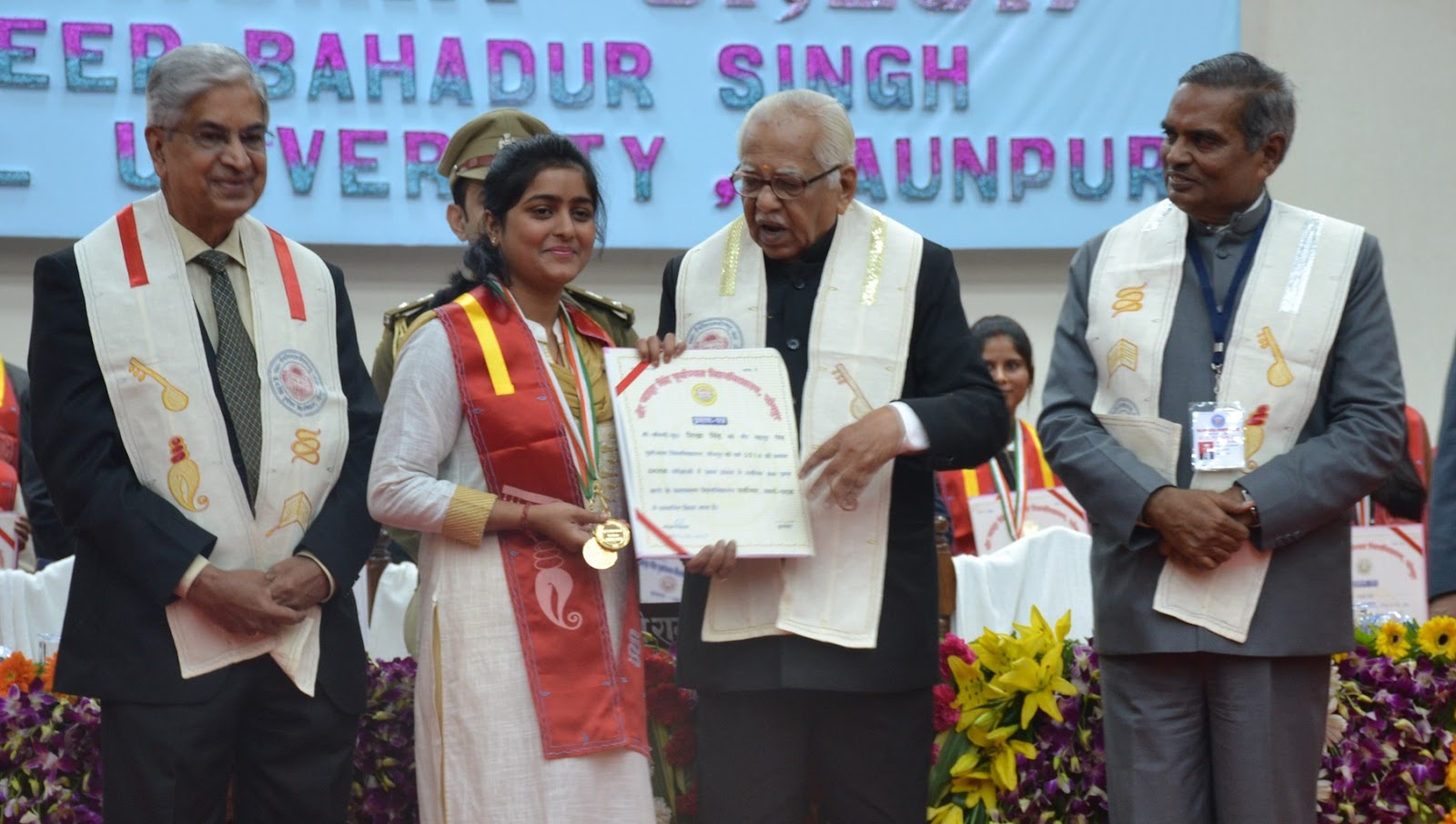 वीर बहादुर सिंह पूर्वांचल विश्वविद्यालय के 25 वें दीक्षांत समारोह में प्रदेश की राज्यपाल एवं कुलाधिपति श्रीमती आनंदीबेन पटेल ने 64 मेधावियों को प्रथम प्रयास में अपने विषय में सर्वोच्च अंक प्राप्त करने पर 65 स्वर्ण पदक प्रदान किया।