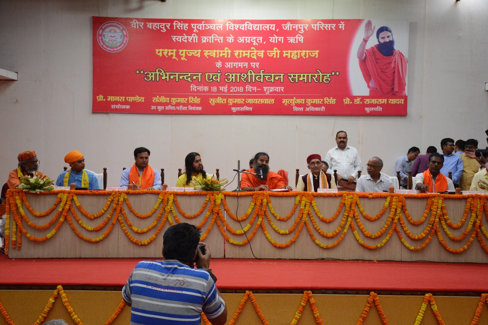 विश्वविद्यालय के अवैद्यनाथ संगोष्ठी भवन में शुक्रवार को स्वामी रामदेव जी का विश्वविद्यालय की तरफ से अभिनंदन एवं आशीर्वचन समारोह का आयोजन किया गया। समारोह में स्वामी रामदेव ने लोगों में राष्ट्र भक्ति, योग प्रेम और नैतिकता का संचार किया। श्रोताओं को कभी हसाया को कभी गंभीर मुद्दों की चर्चा कर सोचने को विवश किया।