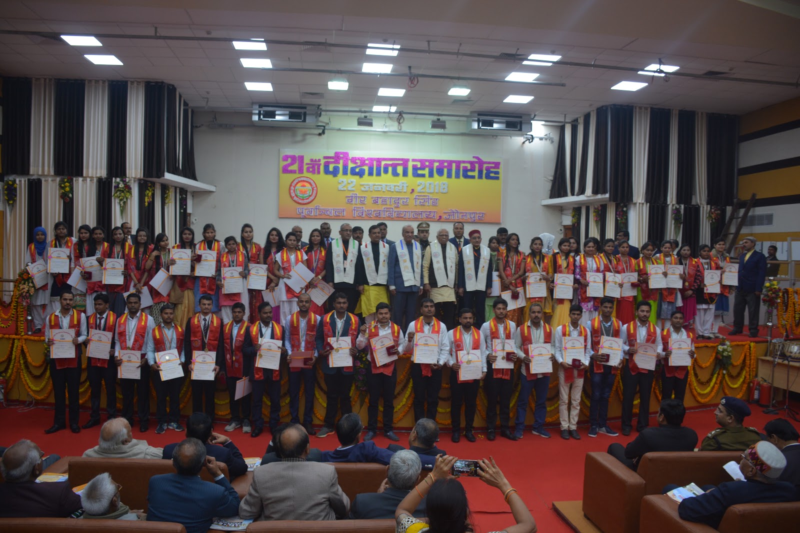 वीर बहादुर सिंह पूर्वांचल विश्वविद्यालय के 21 वें दीक्षांत समारोह का आयोजन विश्वविद्यालय परिसर के महंत अवैद्यनाथ संगोष्ठी भवन में किया गया। दीक्षांत समारोह में प्रदेश के पूर्व राज्यपाल एवं पूर्व कुलाधिपति श्री राम नाईक जी ने प्रथम प्रयास में स्नातक एवं स्नातकोत्तर में सर्वोच्च अंक पाने पर 57 विद्यार्थियों को स्वर्ण पदक प्रदान किया। इसके साथ ही दिव्य सेवा मिशन हरिद्वार के अध्यक्ष आशीष गौतम को डी.लिट् की मानद उपाधि से विभूषित किया। इलाहाबाद उच्च न्यायालय के मुख्य न्यायाधीश न्यायमूर्ति दिलीप बाबा साहेब भोसले के अनुपस्थिति में उन्हें डी. लॉज की मानद उपाधि प्रदान की गई। दीक्षांत समारोह में 228 पी.एच-डी. धारकों को उपाधि एवं राजनीति शास्त्र विषय में डॉ. सुरेश कुमार सिंह को डी.लिट् की उपाधि प्रदान की गई।