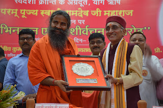 उन्होंने कहा कि जिन जड़ी बूटियों को घास फुस समझ कर फेंक दिया जाता था आज उनसे हजारों करोड़ का साम्राज्य इस देश के लिए तैयार हुआ है और यह जड़ी बूटियां सामाजिक परिवर्तन का माध्यम बनी है।स्वामी रामदेव ने सभागार में उपस्थित श्रोताओं को मंच से ही योग कराया एवं भजन के माध्यम से राष्ट्रभक्ति की भावना पैदा की।